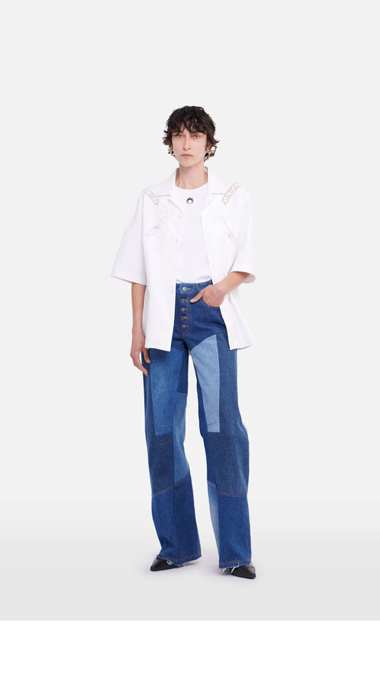 Hybrid Denim Flare Trousers - Navy