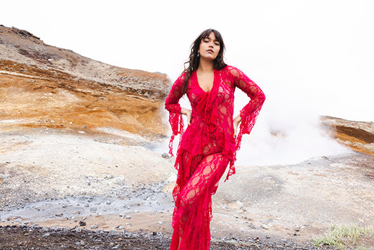 The Butterfly Shirt in Hot Pink Lace