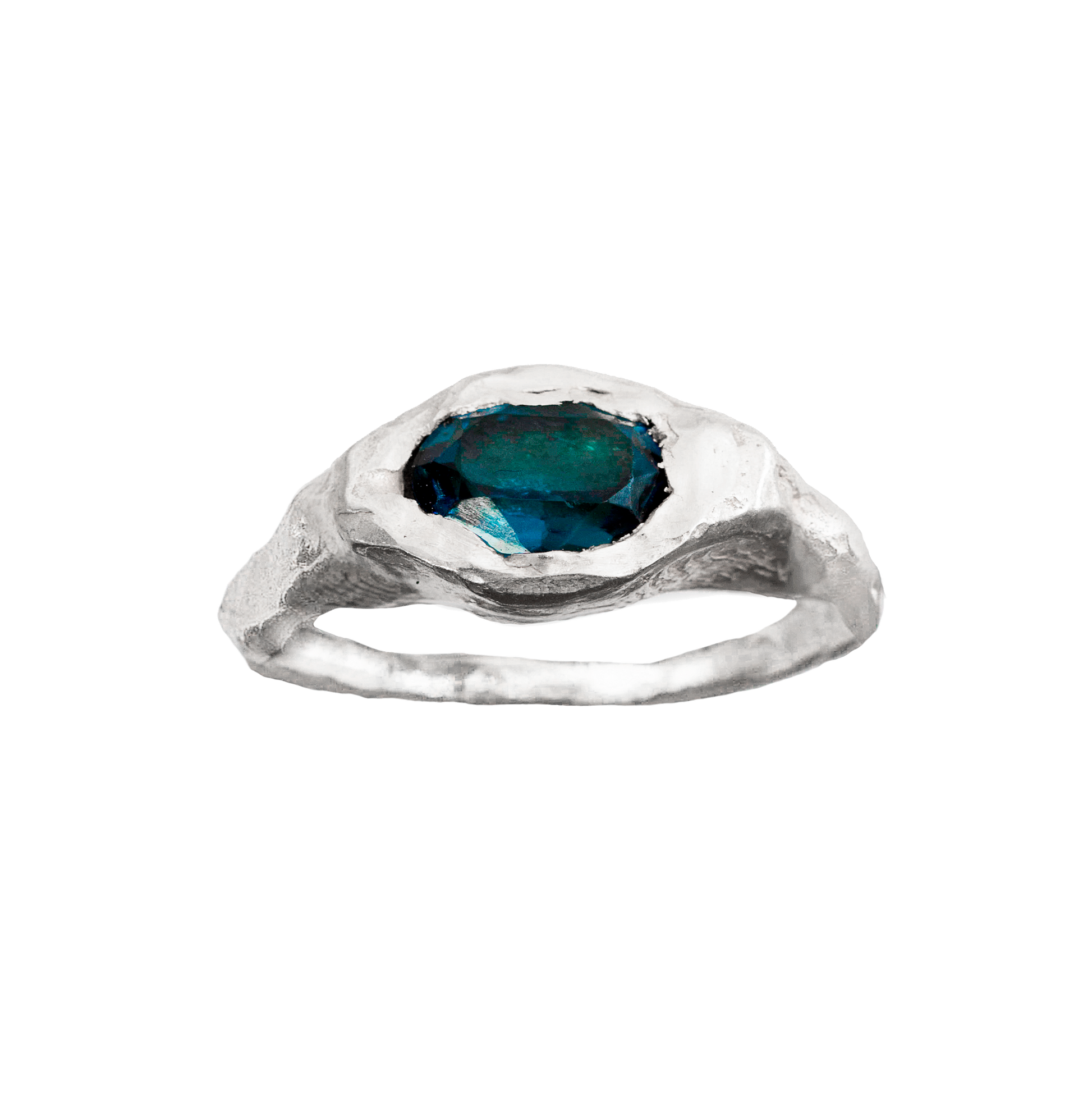 Faro Blue, handmade recycled silver ring with Topaz stone.