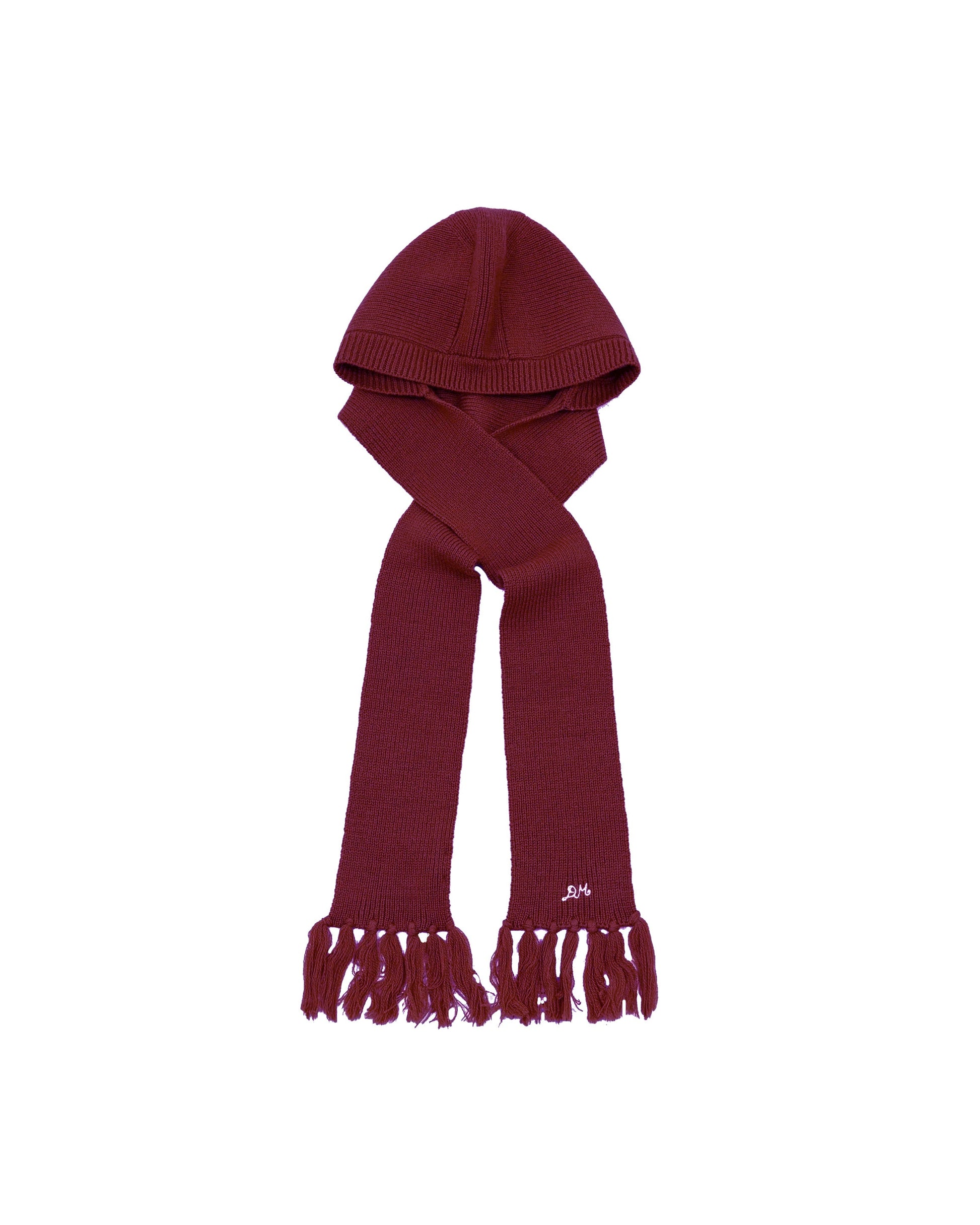 Tassel Hooded Scarf in Burg