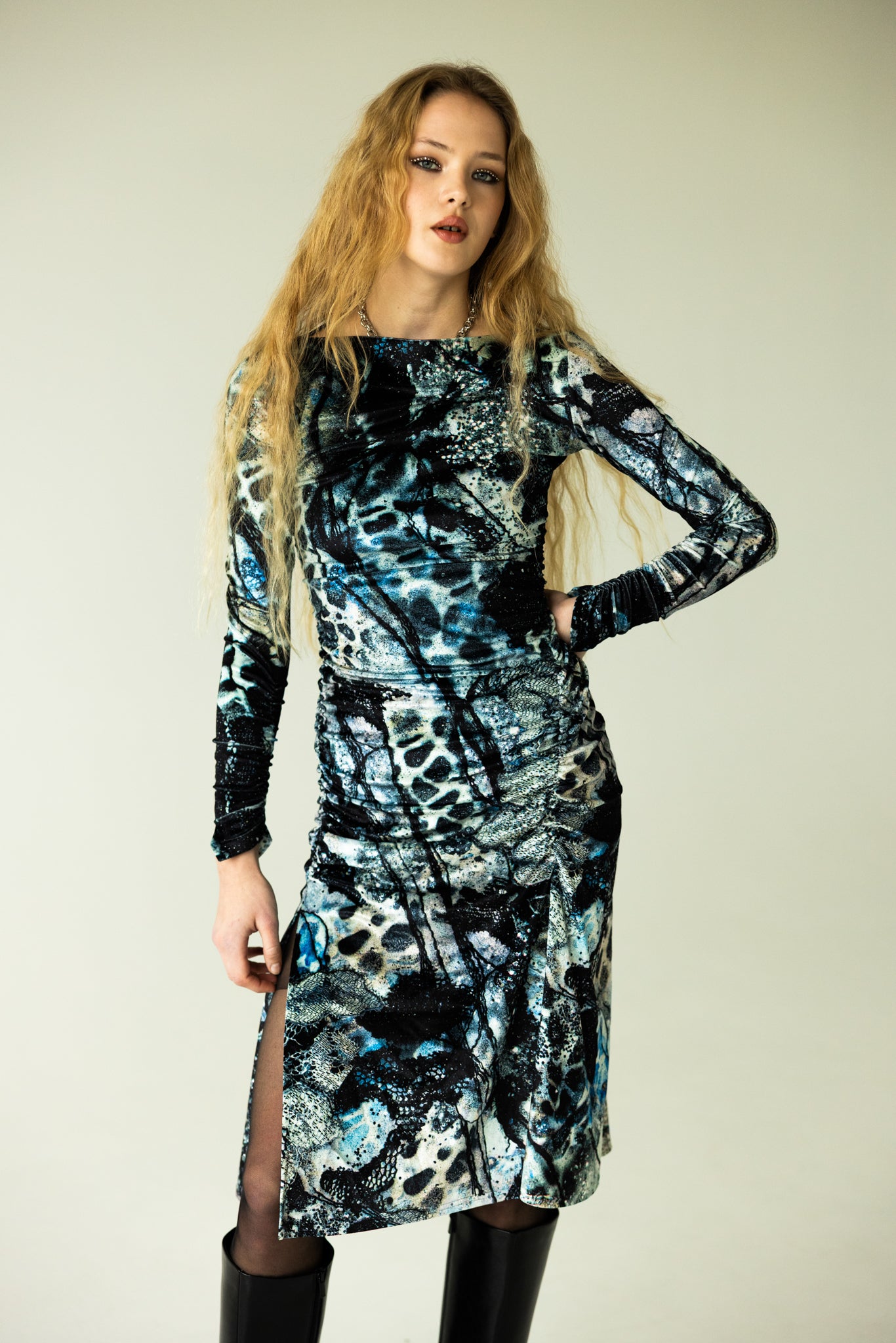The Boatneck Dress in Mystic Fog