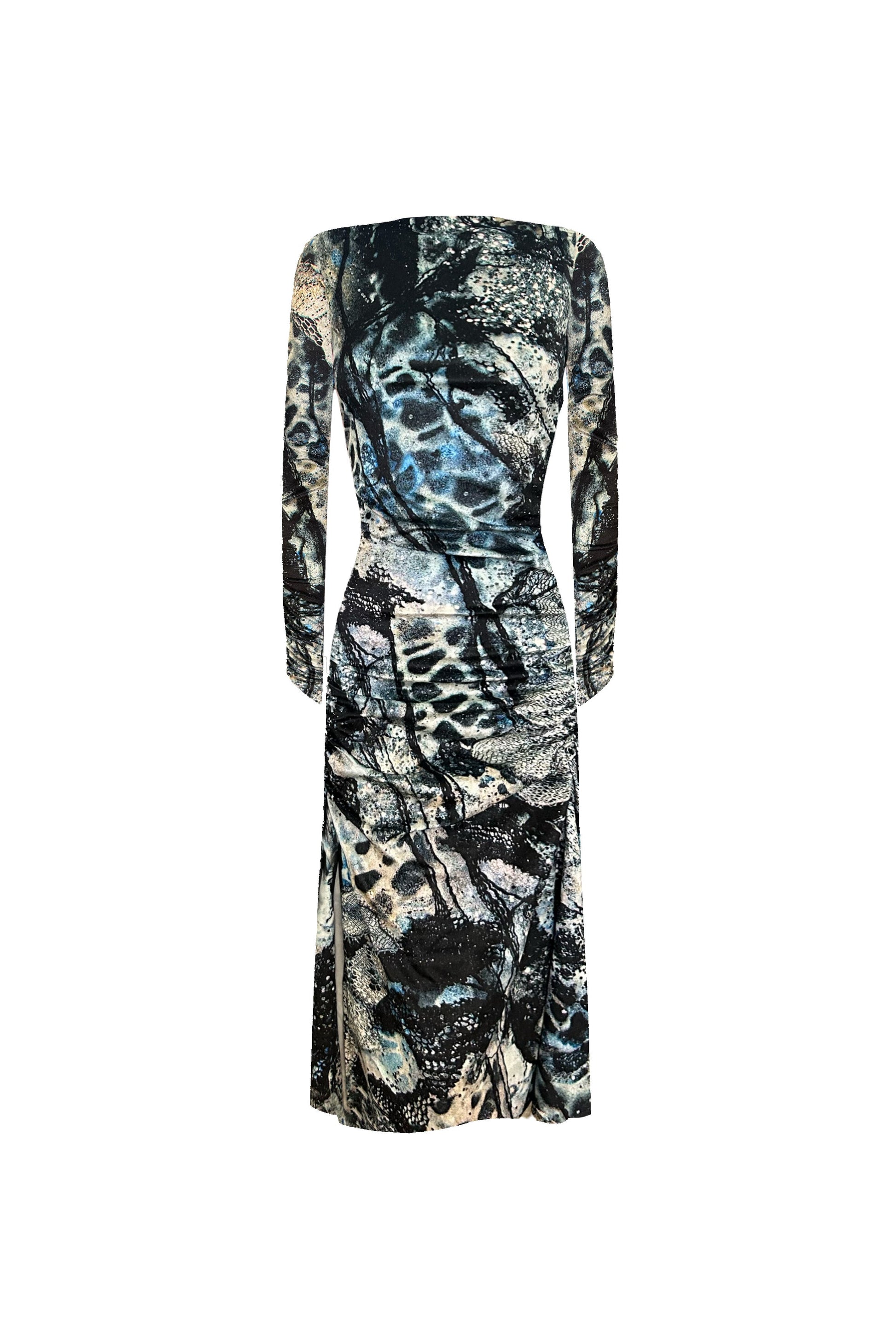 This statement dress combines comfort and style in rich velvet. With subtle ruching at the hips, it’s a figure-hugging piece made for festive nights and special moments.