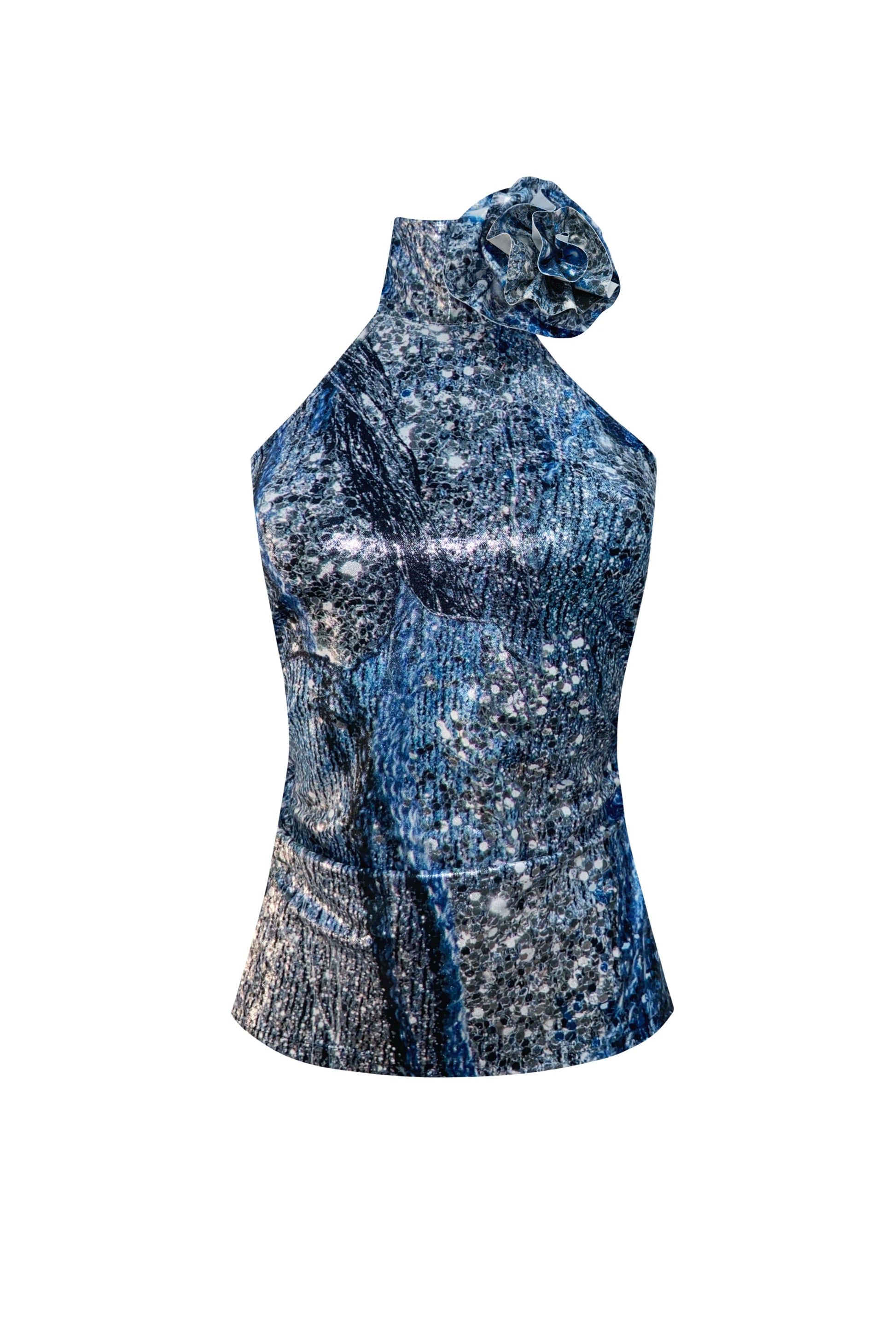 Turn heads in our iconic Rose Halter Top - a true statement piece designed to captivate. The showstopping centerpiece is an oversized rose detail that elegantly adorns the collar.