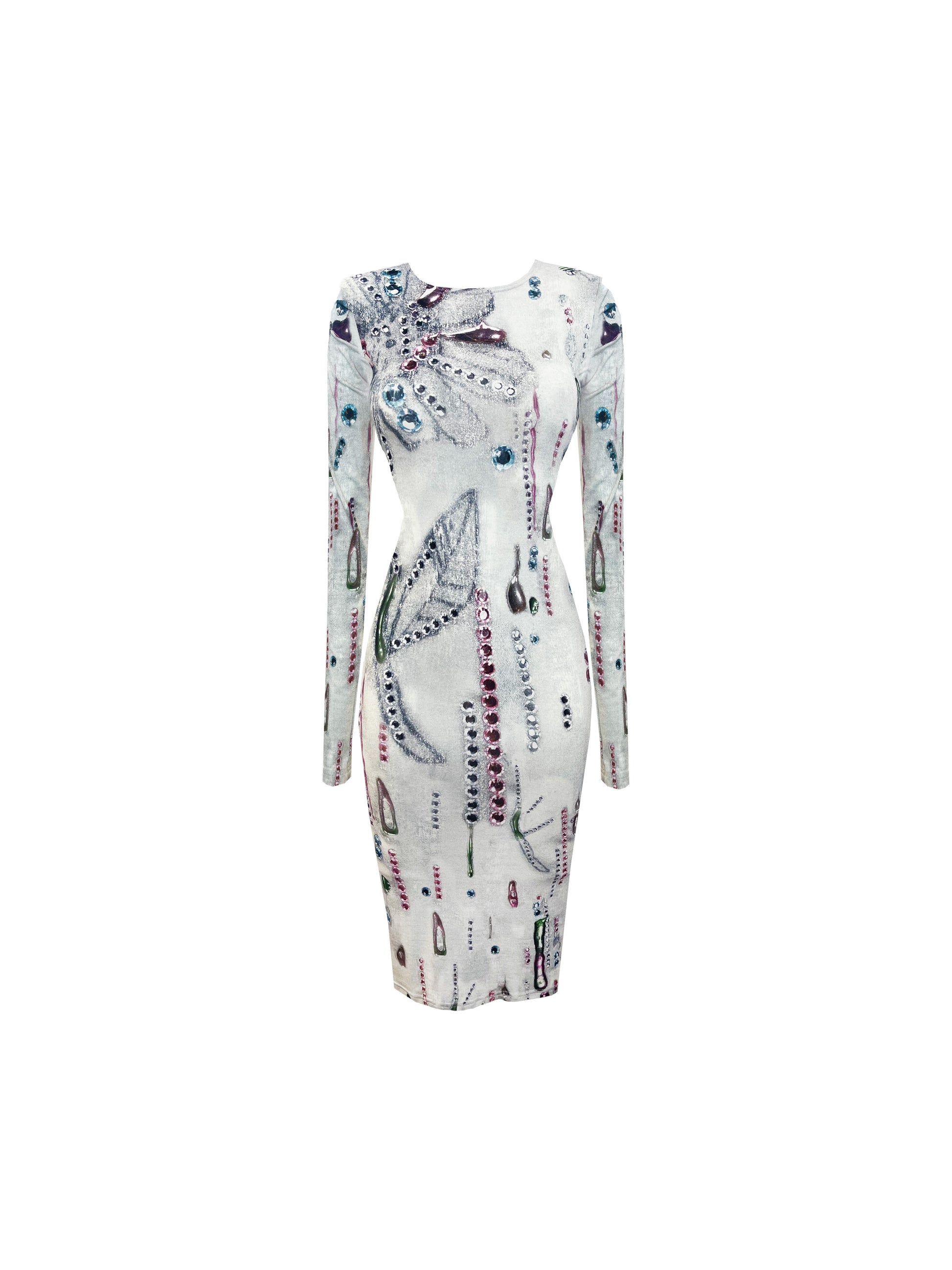 The dress fits true to size. The print is placed differently on each dress and therefore, each dress is unique.